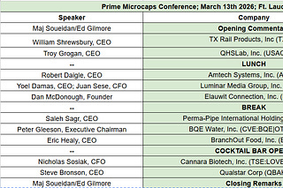 Prime Microcaps Conference Final Event Details | March 13, 2026